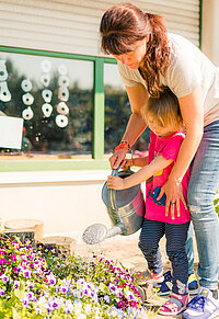 Damit dieser Übergang erfolgreich bewältigt werden kann, braucht es eine liebevolle und bedürfnisorientierte Begleitung, Orientierung und einfühlsamen Schutz durch ihn vertraute Erwachsene. Um dem Kind diesen Übergang zu erleichtern, gibt es bei uns für jedes Kind eine individuelle Eingewöhnungszeit in Begleitung seiner vertrauten Bezugsperson. Das allerwichtigste Element bei der Eingewöhnung ist allerdings der enge, intensive Austausch mit den Eltern. Wir verstehen Eltern als Experten Ihrer Kinder und können so gemeinsam eine wunderbare Brücke vom Elternhaus in den Kindergarten bauen.